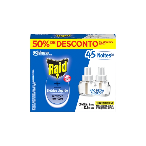 RAID ELETRICO 45 NOITES FAMILY REFIL 32,9ML C/2 50% GRATIS SEGUNDA UNIDADE